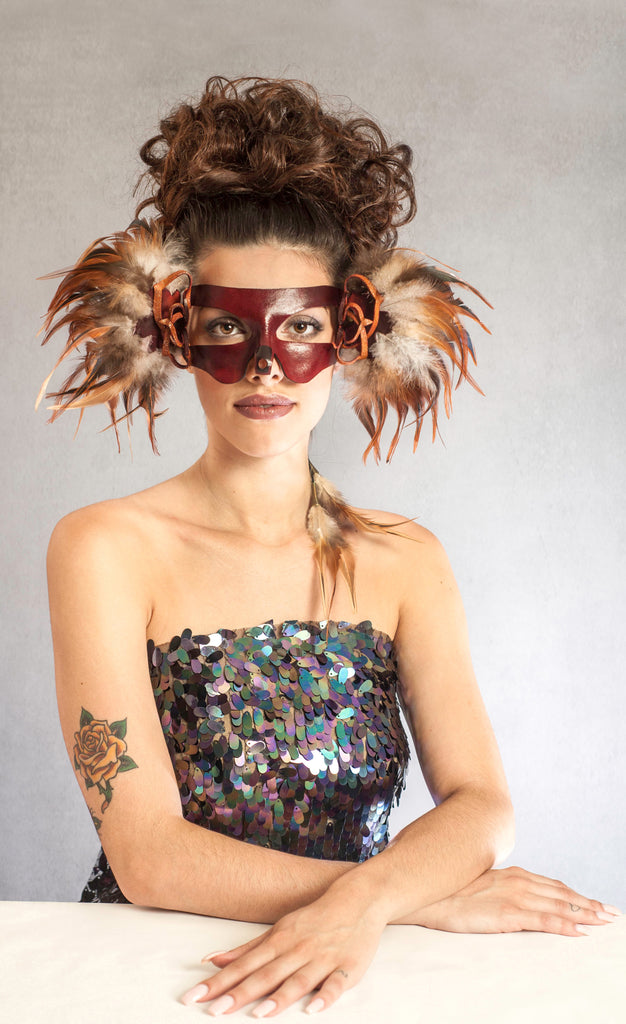 Unisex and completely comfortable to wear leather fox mask. Handmade of top quality, full grain leather. Individually hand cut and dyed. Woven wire whiskers.