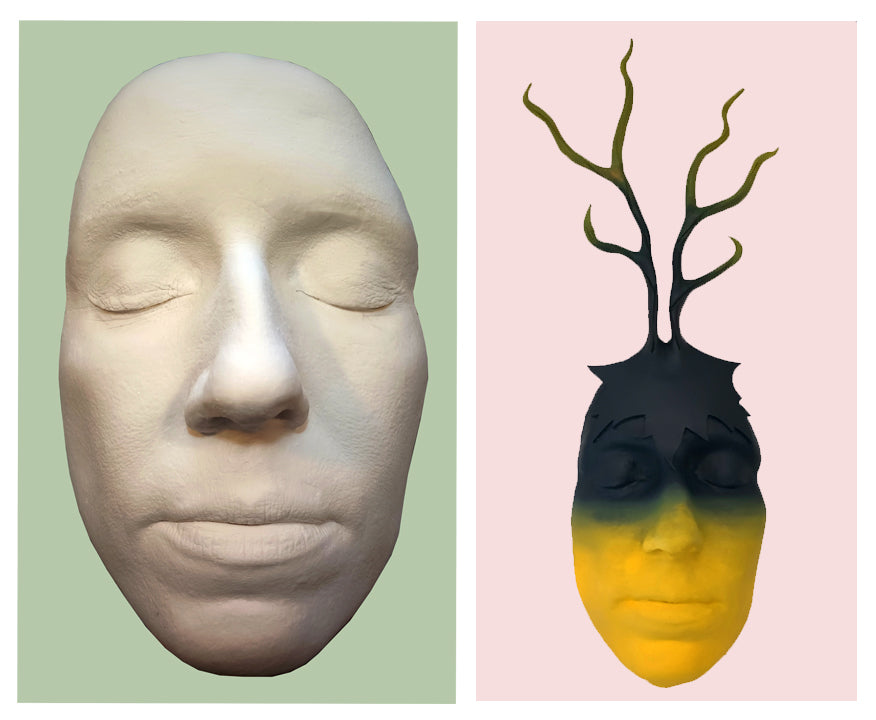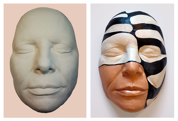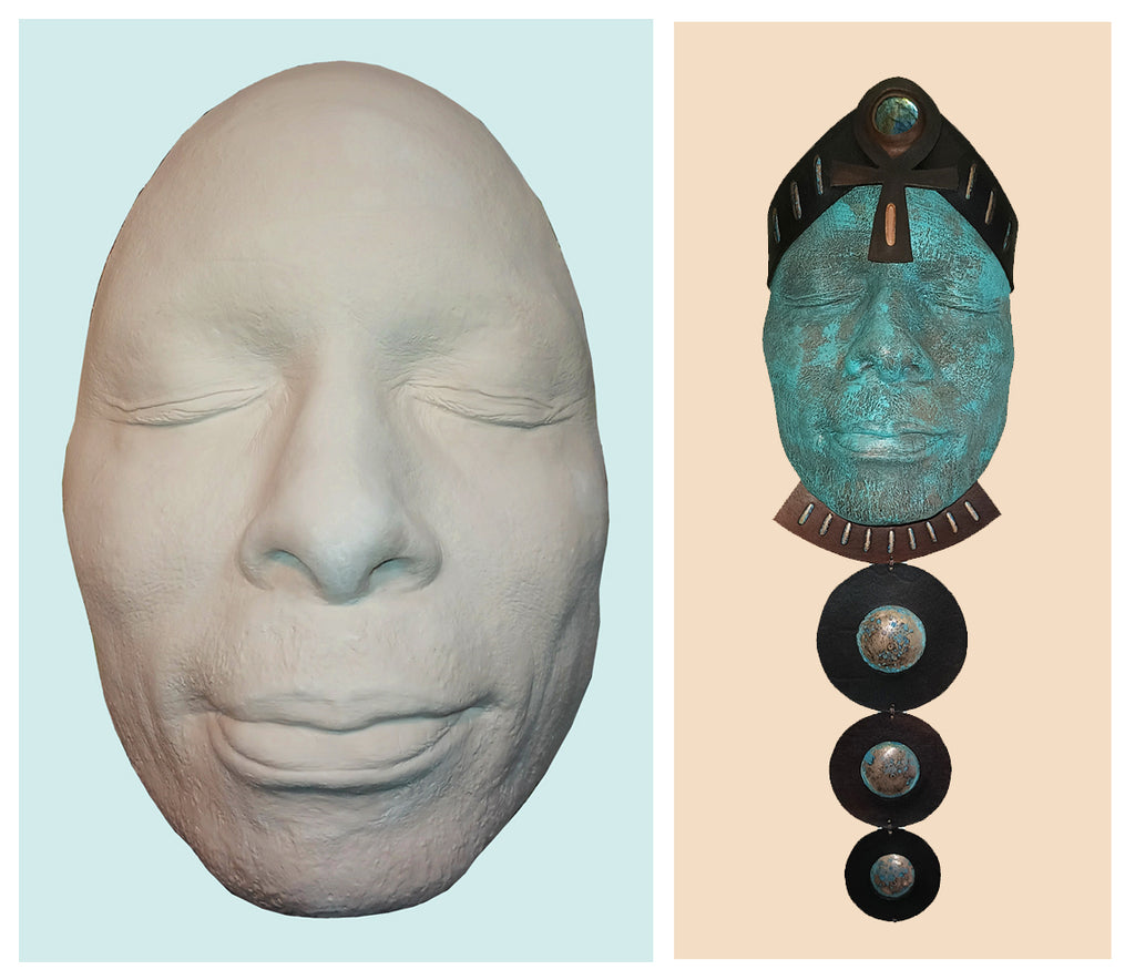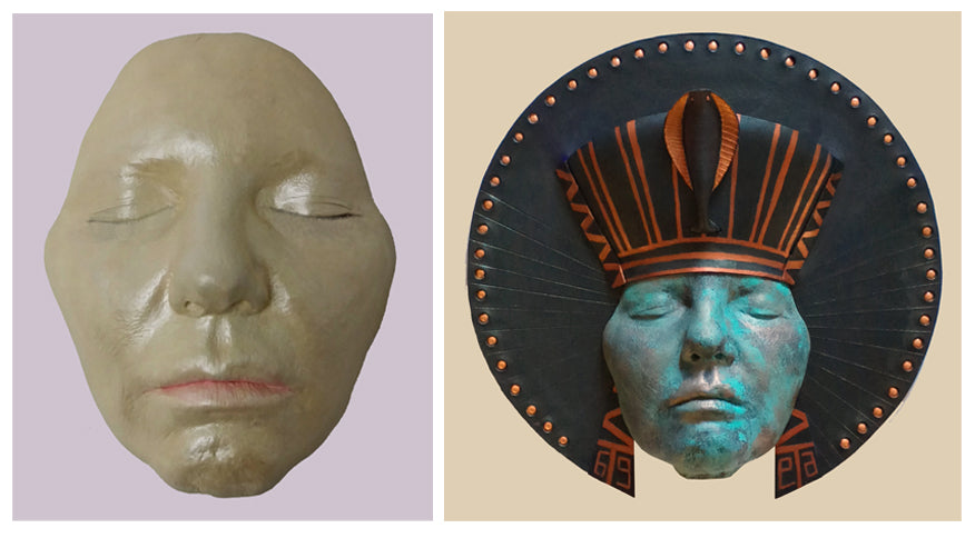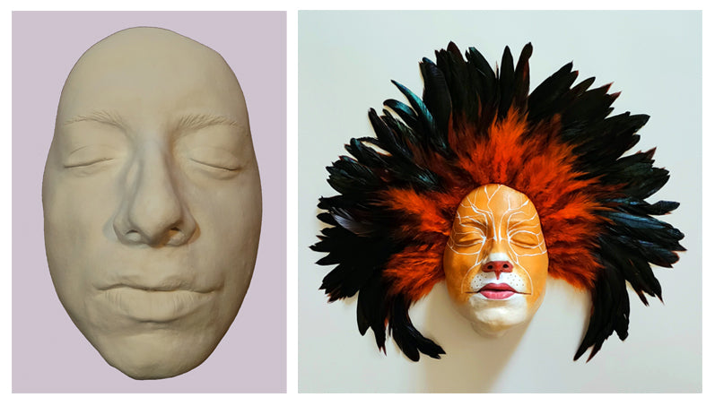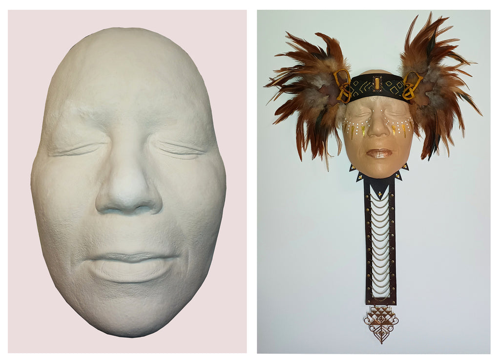 Now that your lifecast is complete, you can consider taking things a step further. I call this process Metamorphosis. Together we will talk about and re-imagine your lifecast and I will get to work transforming it based on your vision. This is a customized, artistic collaboration based on your unique vision. I'll bring that vision to life using a range of materials including: leather, beads, feathers, feathers, paint, metal.